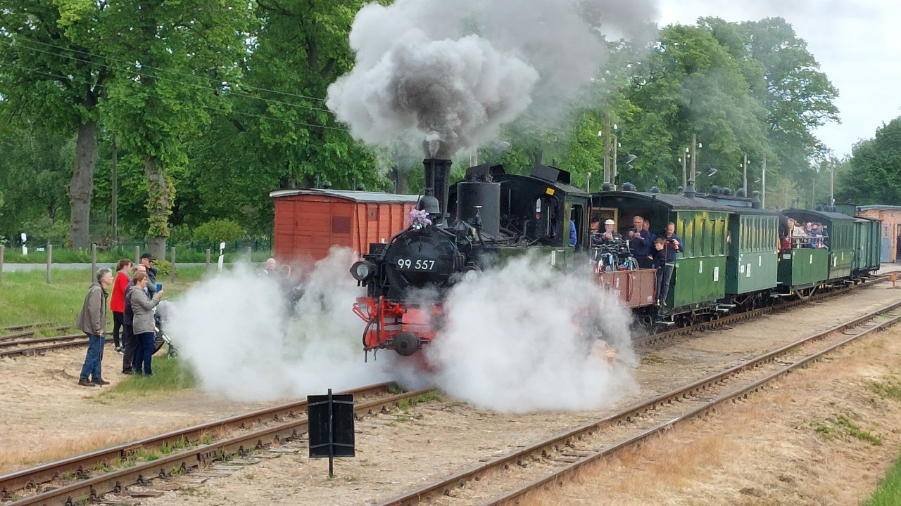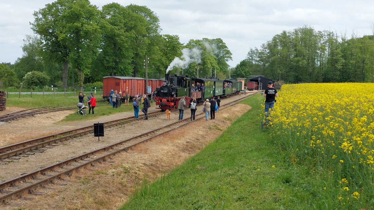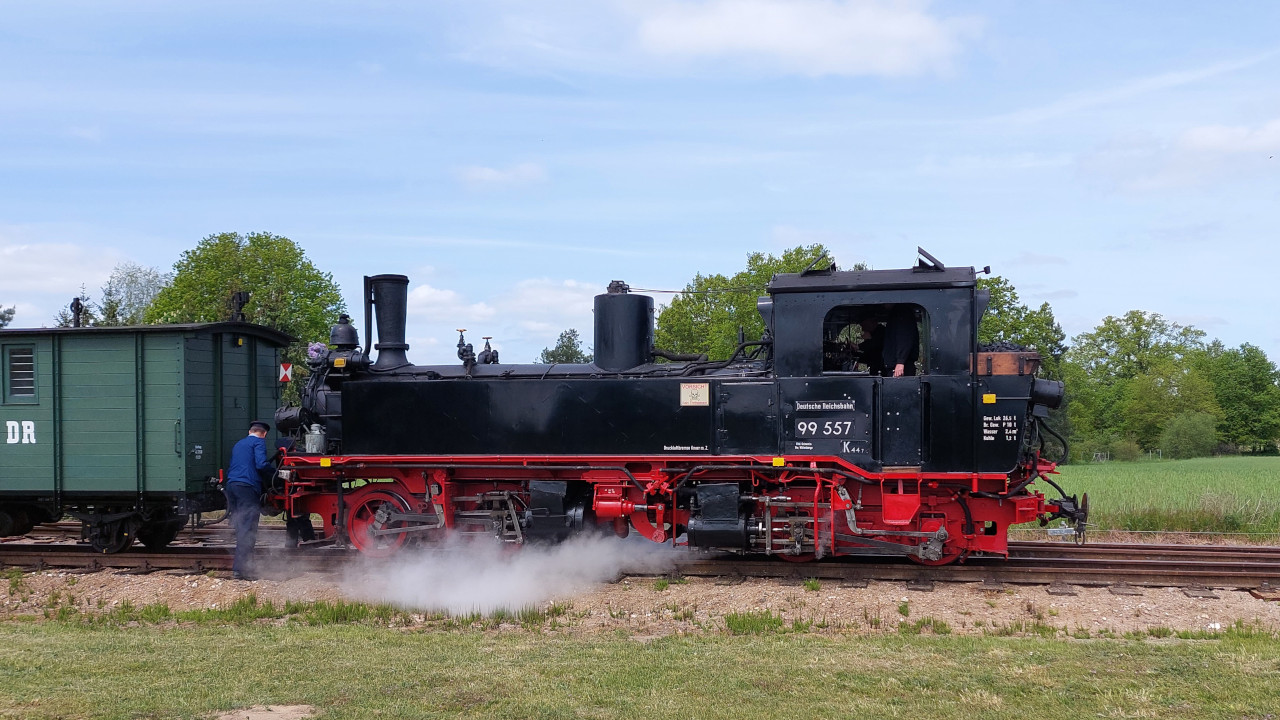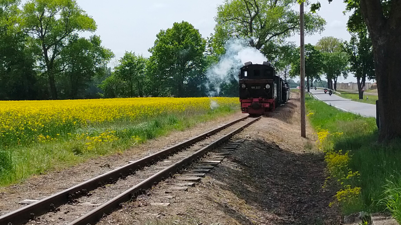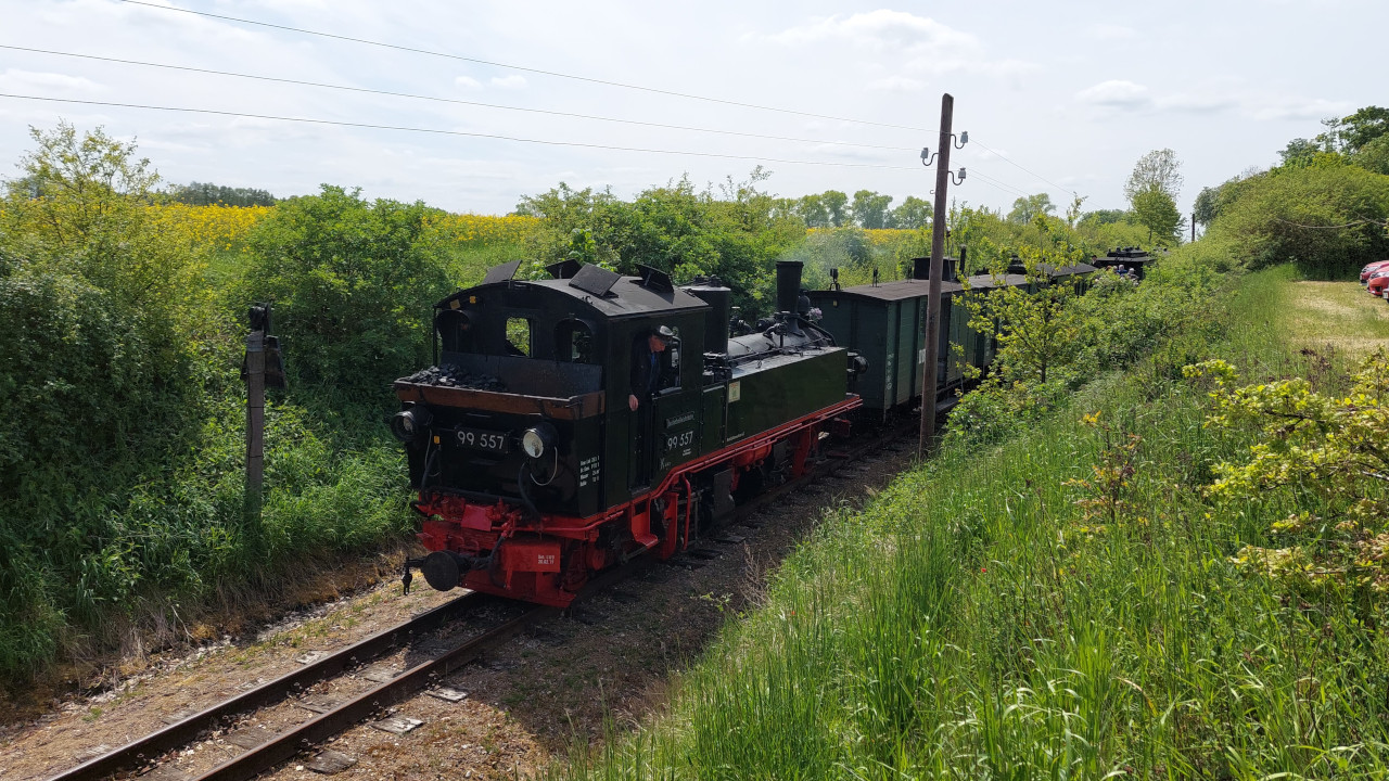 Am 18.05.2022 war ich in der Prignitz beim Pollo, wo diesmal eine Gastlok umher dampfte. Es war wieder die 99 608, die hier mit Schildern einer ehemaligen Lok des Pollos fuhr. Der 99 557. War wirklich ein tolles Erlebnis. Sehr Empfehlenwert. Dazu gibt's natürlich auch ein Video auf Youtube.
