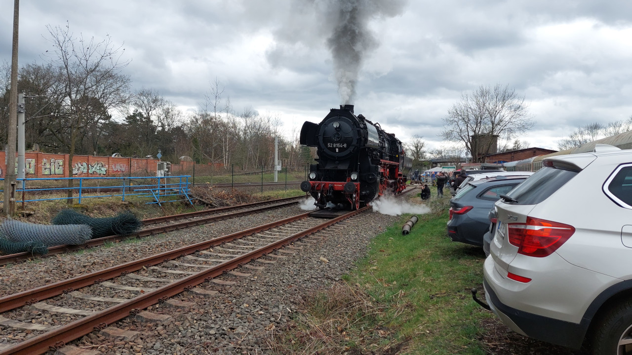 Am 25.03.2023 war ich auf dem Eisenbahnfest in Leipzig-Plagwitz. Dort gab eine zweimal die Baureihe 52.80 zu bestauen. Auf der 52 8154 konnte man eine Führerstandsmitfahrt machen. Eine BR 155 und eine Eurodual waren auch vor Ort. Sehr empfehlenswert, dort mal vorbei zu schauen. Natürlich gibt es dazu auch ein Video auf Youtube.