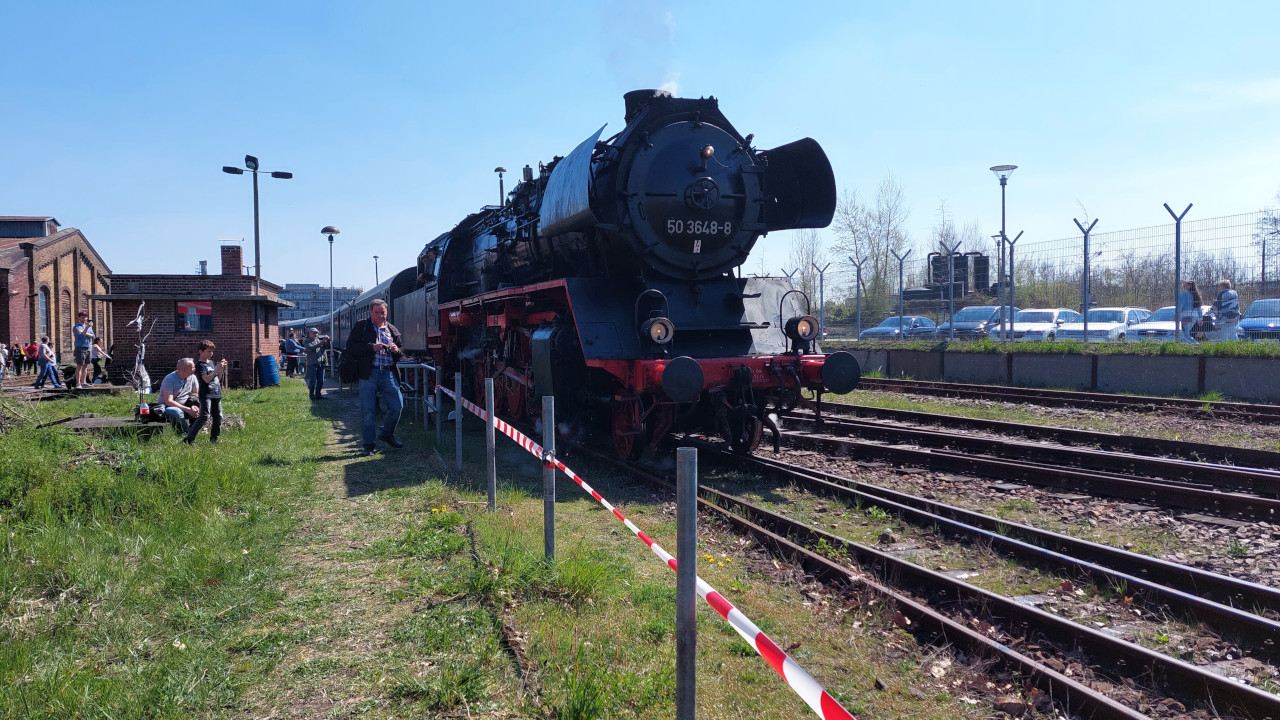 Ein Eisenbahnfest in Berlin. Dampfloks, die zudem Sonderfahrten durch Berlins Stadt machen. Wenn man das erlebt, dann ist man bei den Eisenbahnfesten von Berlin macht Dampf angekommen. Zum Frühlingsfest 2023 war die Chemnitzer 50 3648 zu Gast und machte neben tollen Fotomotiven für Foto-und Filmfreunde auch mehrere Sonderfahrten über den Berliner S-Bahn Ring. Die vereinseigene 52 8177 stand für Führerstandsmitfahrten bereit. Außerdem waren auch moderne Lokomotiven und Triebzüge vor Ort. Alles in allem ein tolles Fest. Schaut euch gern dazu auch das Video auf Youtube an und schaut bei den nächsten Festen selbst mal vorbei.