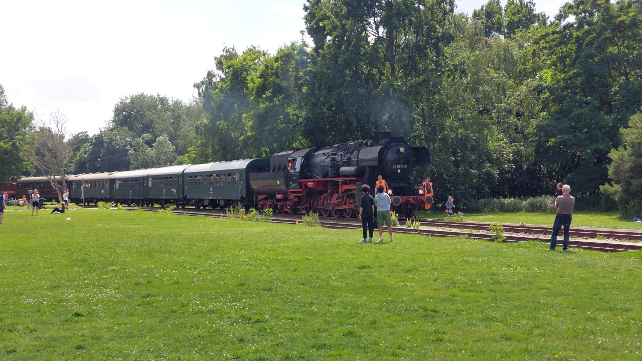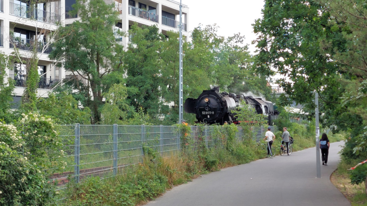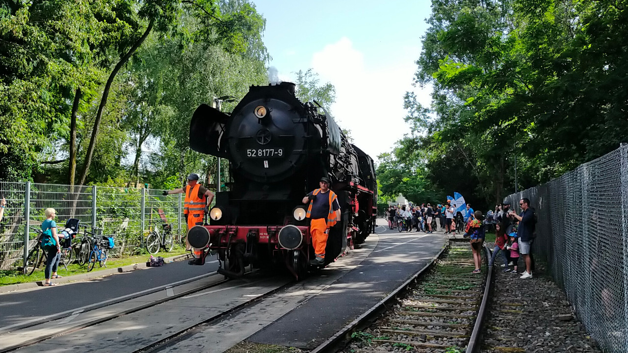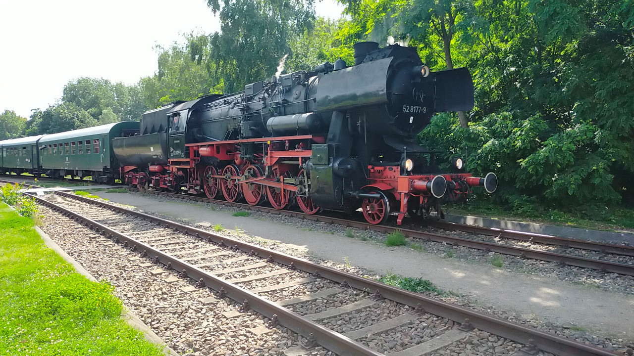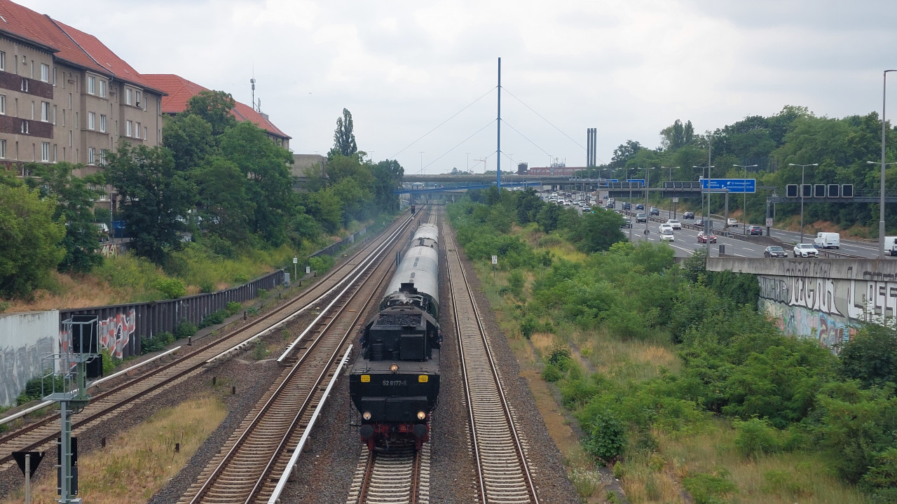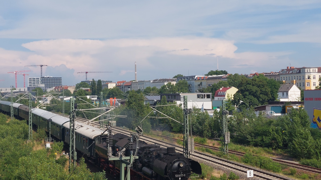 Die Else (52 8177-9) dampfte am 02.07.2023 zwischen Südkreuz und Technikmuseum. Das Technikmuseum feierte an diesen Tag das 40 Jährige bestehen. Als Pendelzug waren die Eisenbahnfreunde Berlin mit einem Zug, der von der 52 8177 und der 119 158 gezogen wurde, unterwegs. Anschließend gibt es ein paar Einblicke in die Nachbereitungen nach solchen Fahrten. Zum Tag gibt es natürlich auch ein Video auf Youtube.