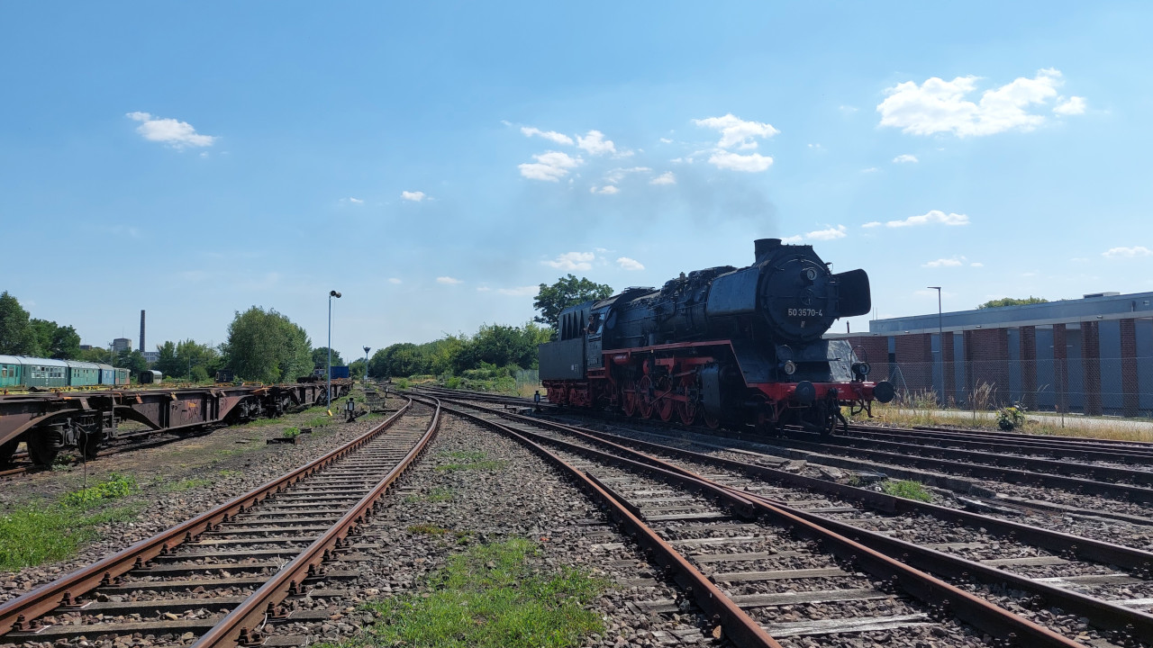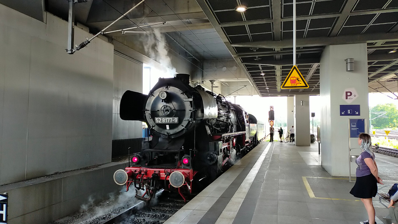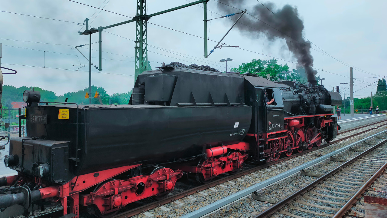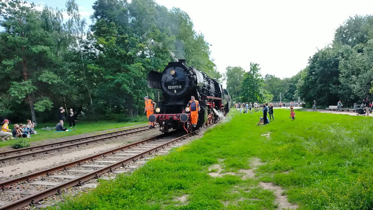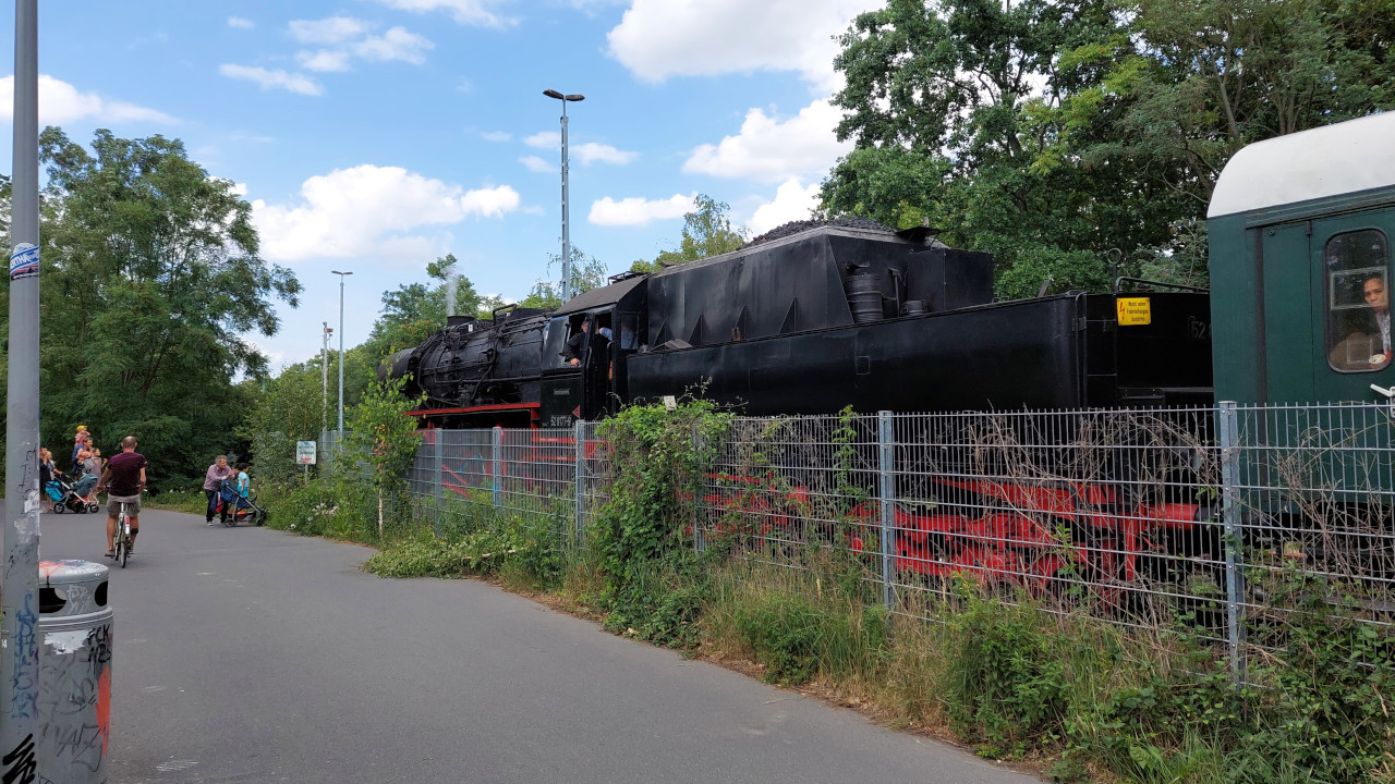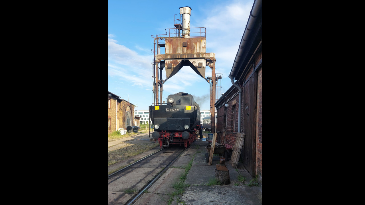 Die Else (52 8177-9) dampfte am 02.07.2023 zwischen Südkreuz und Technikmuseum. Das Technikmuseum feierte an diesen Tag das 40 Jährige bestehen. Als Pendelzug waren die Eisenbahnfreunde Berlin mit einem Zug, der von der 52 8177 und der 119 158 gezogen wurde, unterwegs. Anschließend gibt es ein paar Einblicke in die Nachbereitungen nach solchen Fahrten. Zum Tag gibt es natürlich auch ein Video auf Youtube.