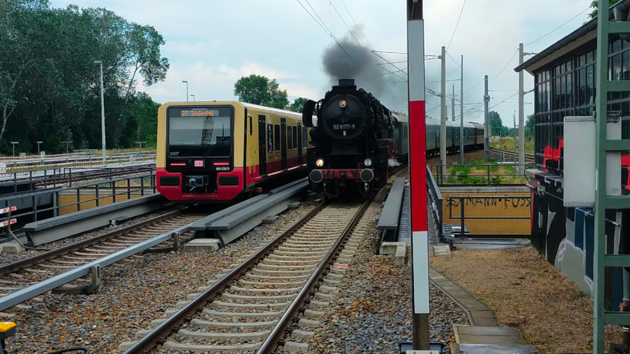 Am 17.06.2023 waren die Berliner Eisenbahnfreunde mit ihrer 52 8177-9 (Else) unterwegs. Es gab zwei Rundtouren auf der Berliner Ringbahn. Wie viele andere Eisenbahnfans auch, war ich natürlich auch an verschiedenen Stellen an der Strecke um ein Foto oder Video zu machen. Als kleines Highlight durfte ich durch Zufall noch auf das Gelände des Vereins und konnte somit auch ein paar Einblicke in die Nachbereitungen nach solchen Veranstaltungen bekommen. Dafür geht auch noch einmal ein großer Dank an den Verein dafür raus, dass dies mir ermöglicht wurde. Von dem gesamten Tag gibt es natürlich auch ein Video auf Youtube.