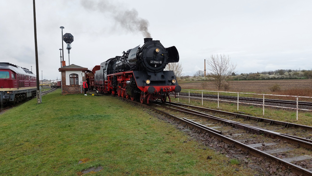 Am 01.04.2023 war ich beim Eisenbahnfest in Staßfurt gewesen. Und dies ist kein Aprilscherz. Den Beweis dafür gibt's im Video auf Youtube. Zu Gast waren die beiden Dampflokomotiven 95 027 und 41 1144. Diese zogen neben den zwei auch Anwesenden Ludmillas die Fotogüterzüge oder standen für Führerstandsmitfahrten bereit. Wieder ein gutes Fest des Vereines. Schaut bei den nächsten Festen auf jeden Fall einmal vorbei.