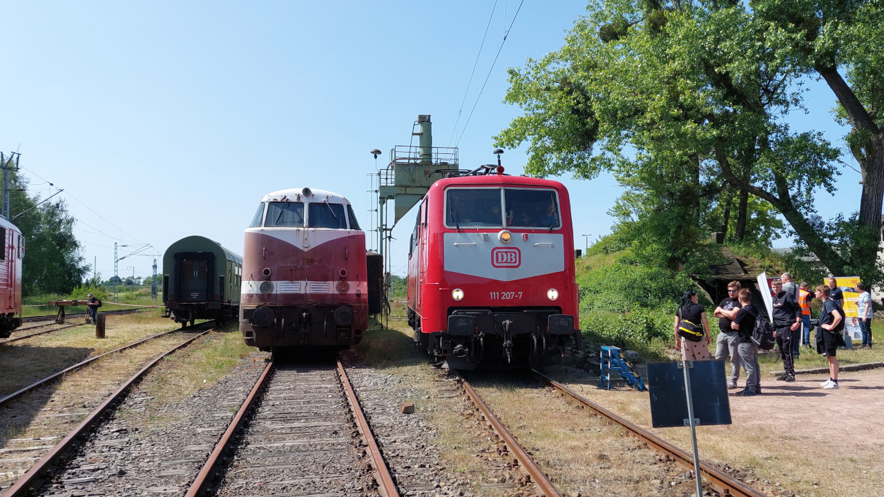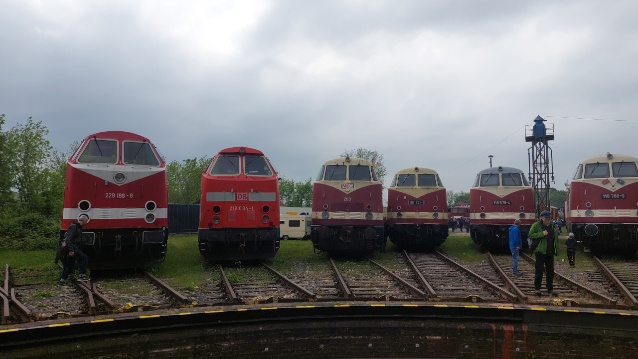Am 27.05.2023 war ich in Wittenberg beim Orientrot Treffen gewesen. Dort war alles, wie der Name schon sagt rot. Von Diesel- bis Elektrolok. Neben mehreren Ludmillas konnte man auch eine V60, V100 und die BR 155 und 250 bestaunen. Außerdem konnte man mit der Baureihe E10 auf dem Führerstand mitfahren. Von der Baureihe waren 3 Lokomotiven anwesend. Zu dem ganzen Fest gibt es natürlich ein Video auf Youtube.