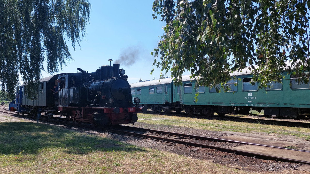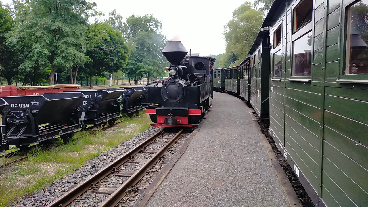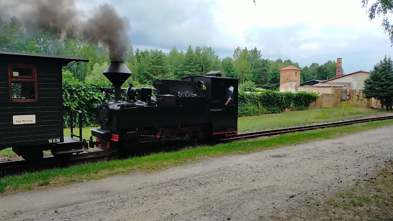 Am 5.08.2023 war ich bei der Waldeisenbahn Muskau gewesen. Dort fand der monatliche Dampfbetrieb statt. Zwei Dampflok fuhren zwischen Weißwasser und Bad Muskau und zwischen Weißwasser und Krumlau. Dazu gibt's auch ein Video auf Youtube.